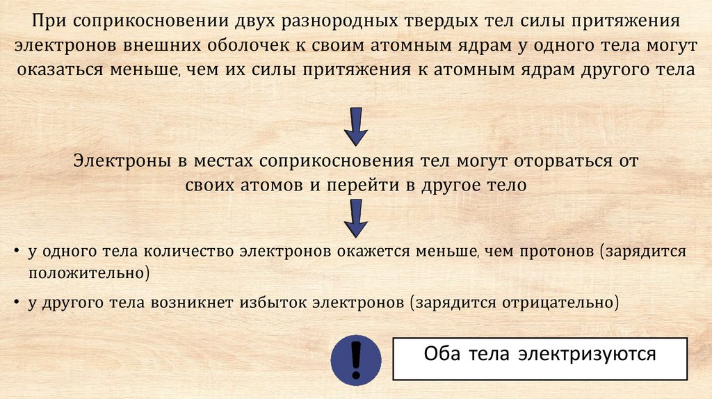 • у одного тела количество электронов окажется меньше, чем протонов (зарядится