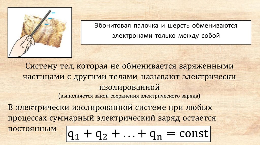 Эбонитовая палочка и шерсть обмениваютсяэлектронами только между собой