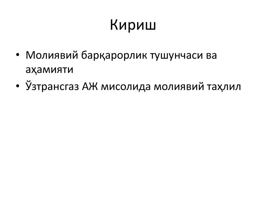 Ўзтрансгаз АЖ Молиявий Барқарорлик. Кириш
