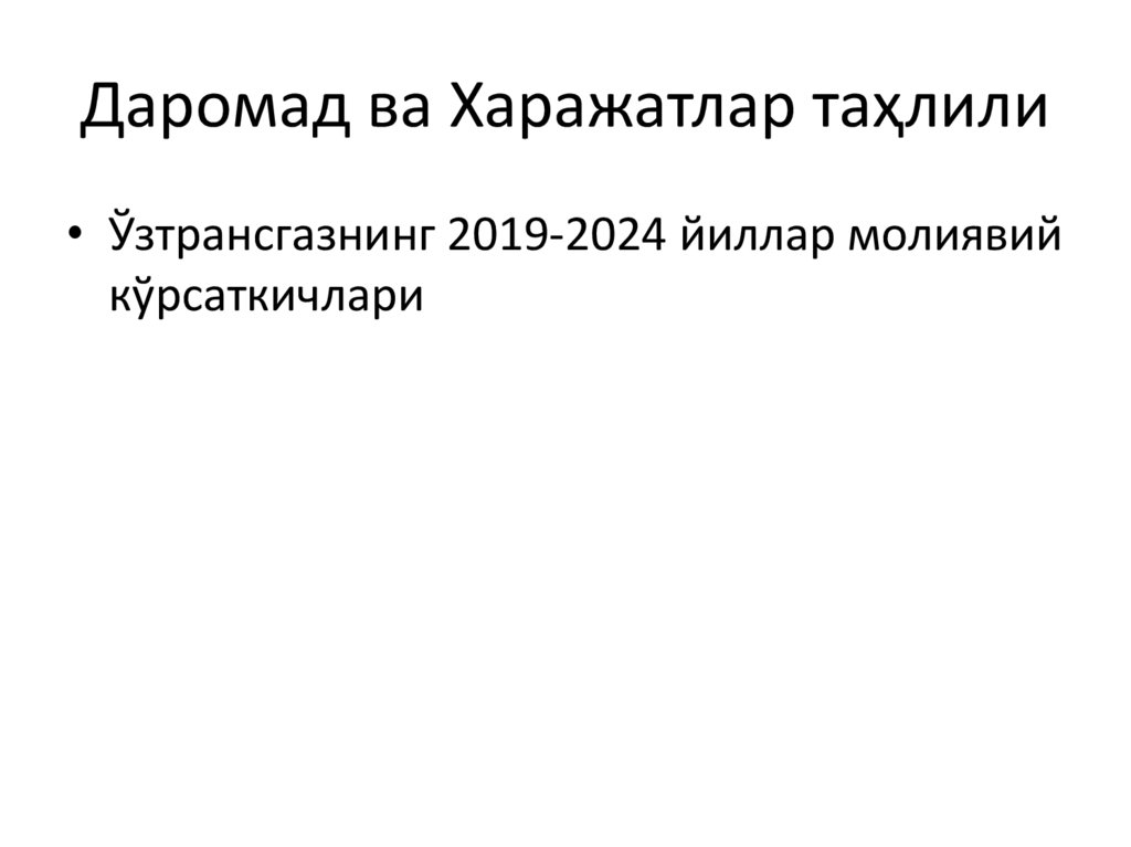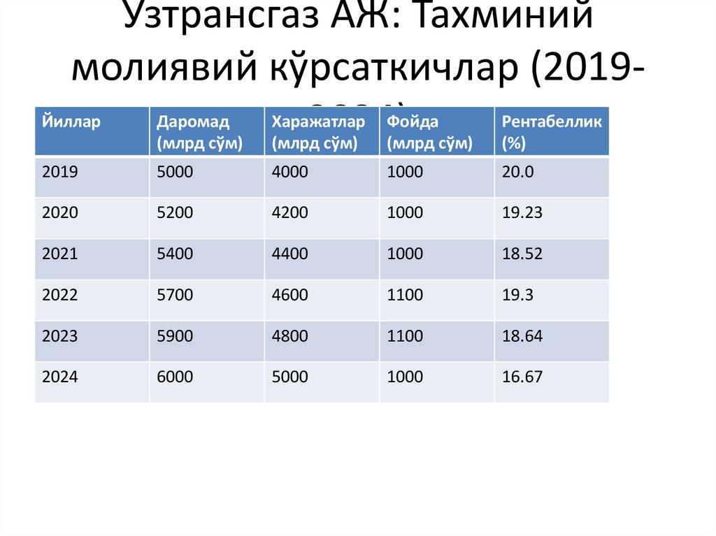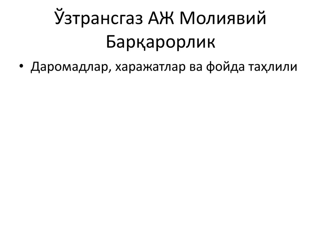 • Ўзтрансгаз АЖ мисолида молиявий таҳлил