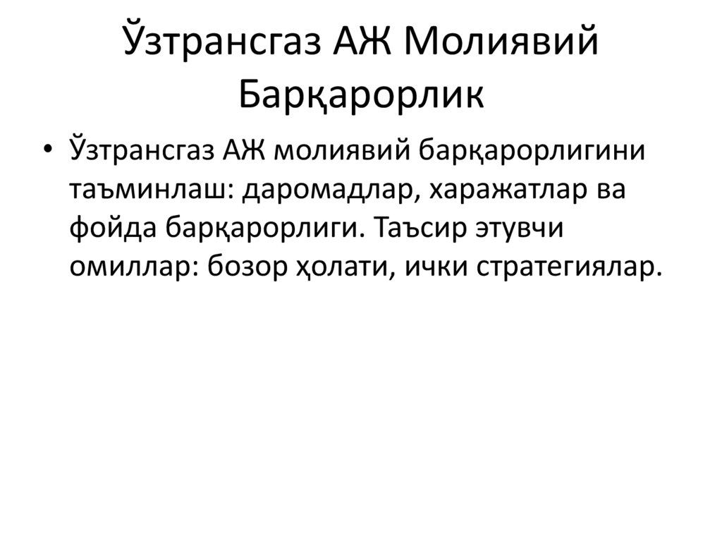 Ўзтрансгаз АЖ МолиявийБарқарорлик
