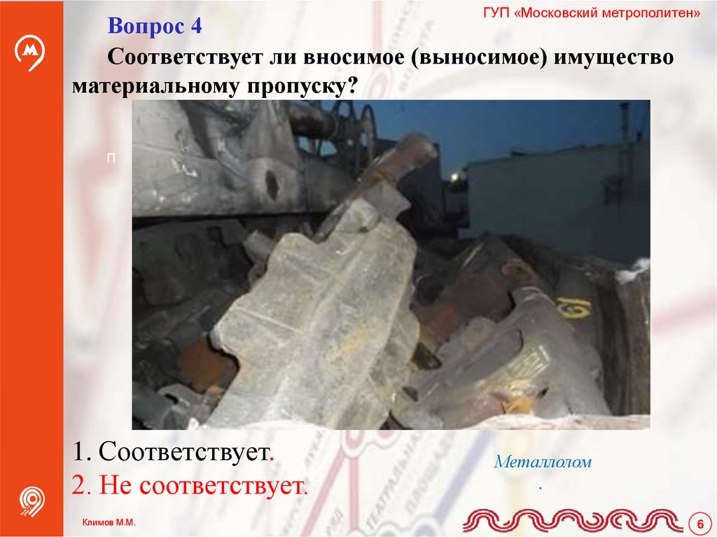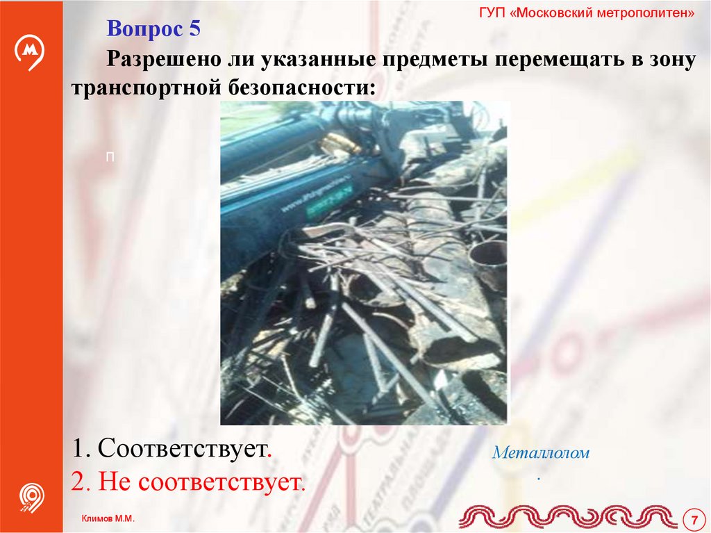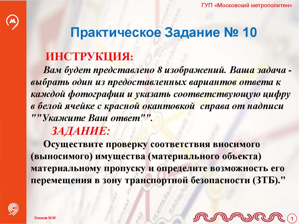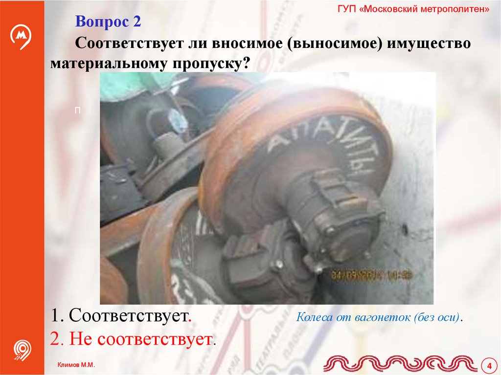 ГУП «Московский метрополитен»Осуществите проверку соответствия вносимого (выносимого)