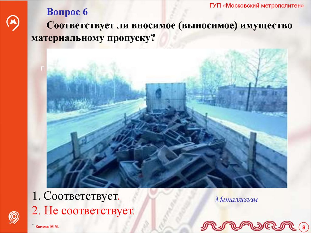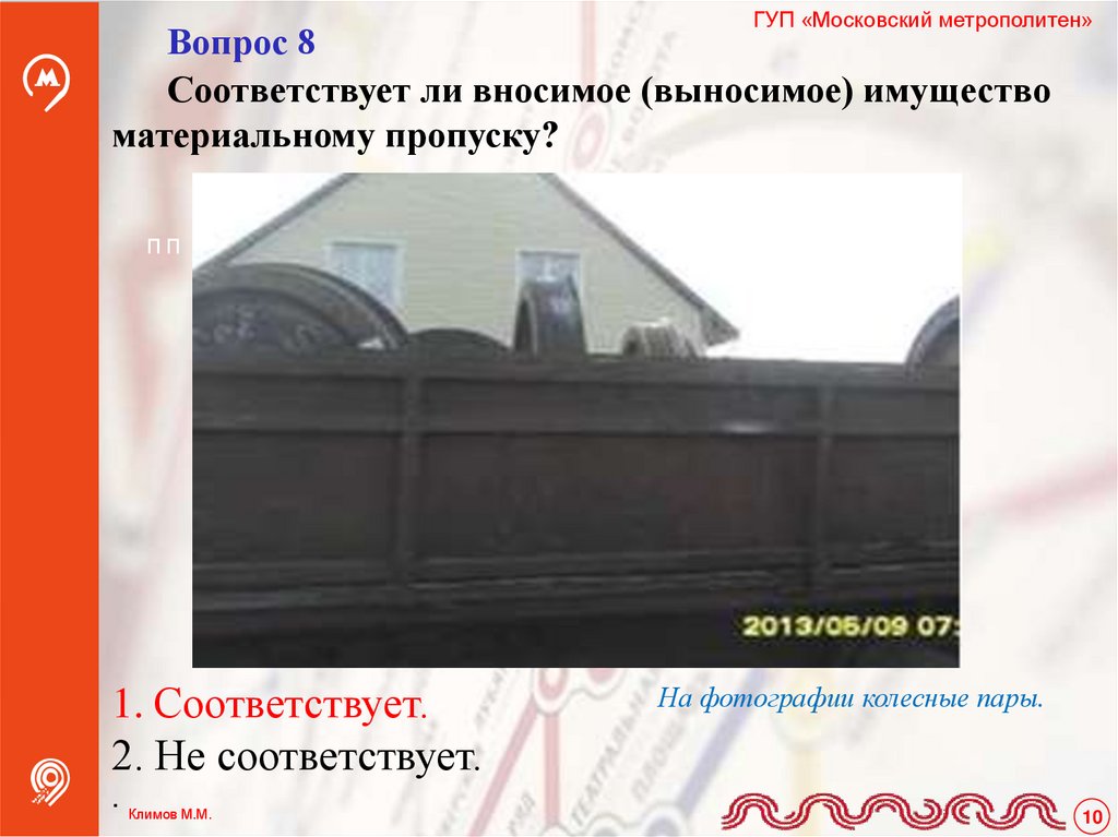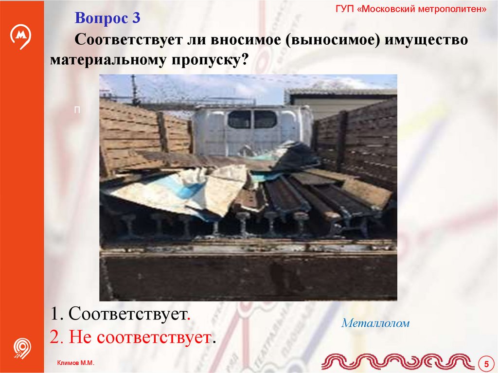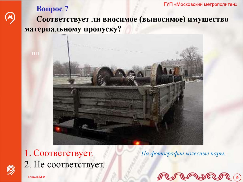 ГУП «Московский метрополитен»Осуществите проверку соответствия вносимого (выносимого)