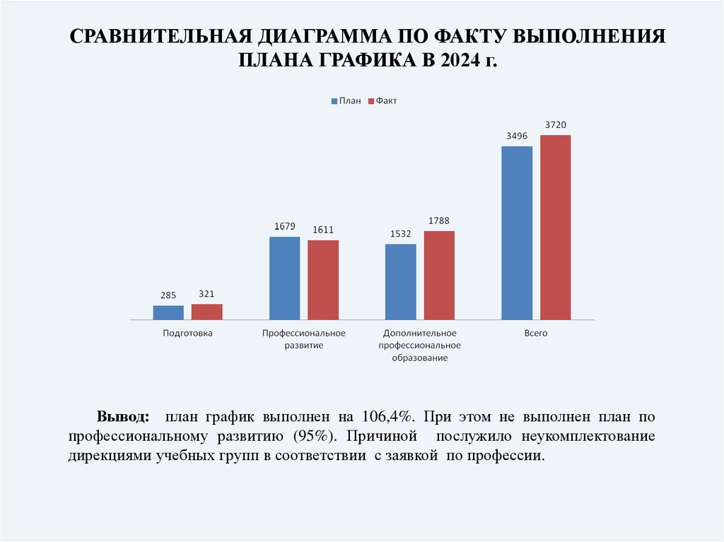 3. СРАВНИТЕЛЬНАЯ ДИАГРАММА ПО ФАКТУ ВЫПОЛНЕНИЯ ПЛАНА ПОДГОТОВКИ, ПЕРЕПОДГОТОВКИ, РАЗВИТИЯ КОМПЕТЕНЦИЙ И ДОПОЛНИТЕЛЬНОГО