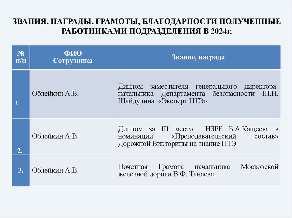 15. ЗВАНИЯ, НАГРАДЫ, ГРАМОТЫ, БЛАГОДАРНОСТИ ПОЛУЧЕННЫЕ РАБОТНИКАМИ ПОДРАЗДЕЛЕНИЯ В 2024г.
