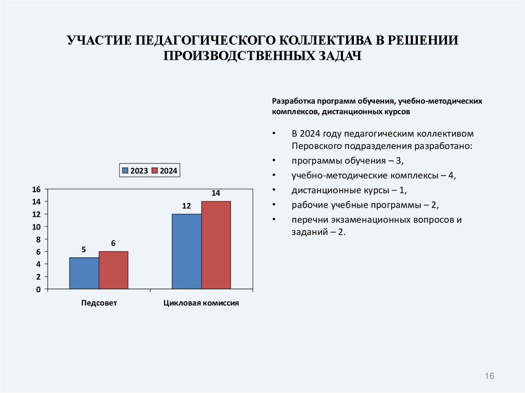 16. УЧАСТИЕ ПЕДАГОГИЧЕСКОГО КОЛЛЕКТИВА В РЕШЕНИИ ПРОИЗВОДСТВЕННЫХ ЗАДАЧ