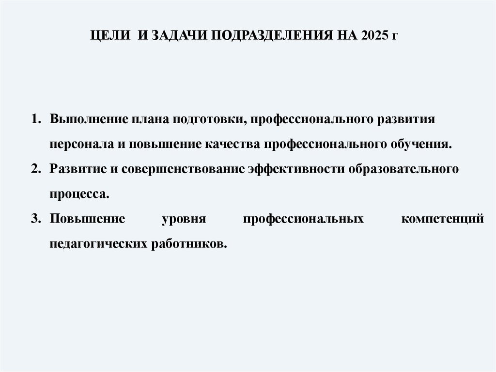 20. ЦЕЛИ И ЗАДАЧИ ПОДРАЗДЕЛЕНИЯ НА 2025 г