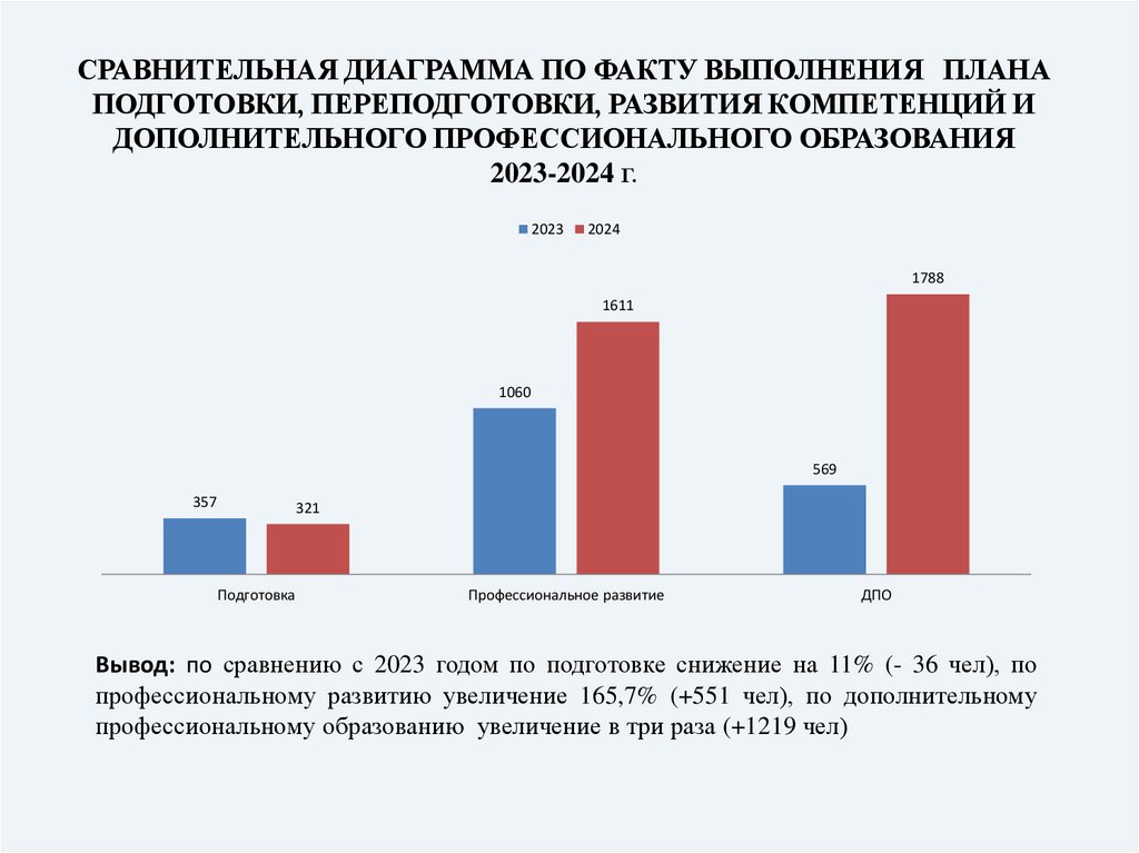 Вывод: по сравнению с 2023 годом по подготовке снижение на 11% (- 36 чел), по