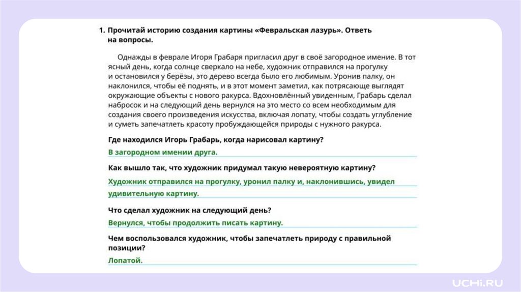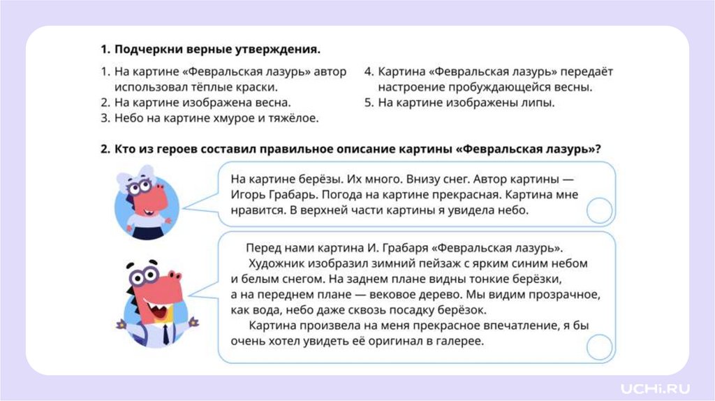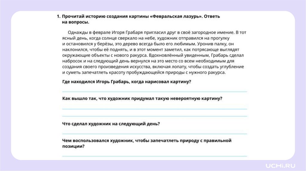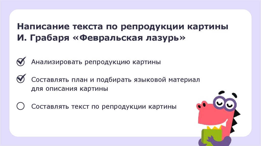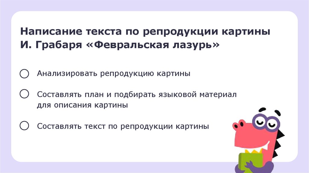 Чем изучающее чтение отличается от ознакомительного. Написание текста по репродукции картины И. Грабаря «Февральская лазурь»