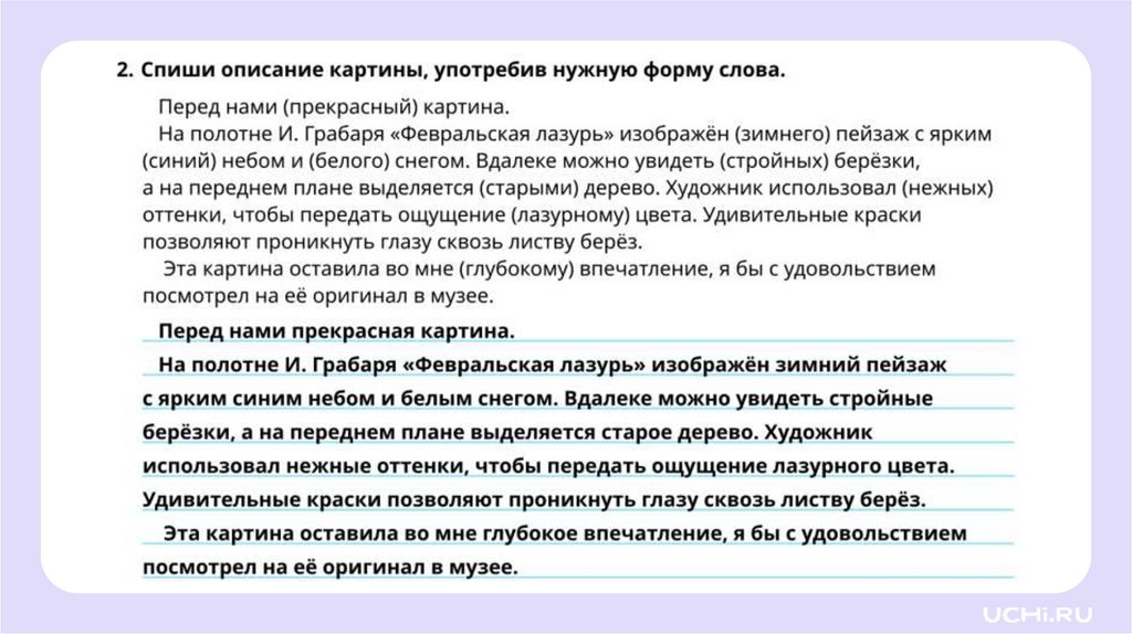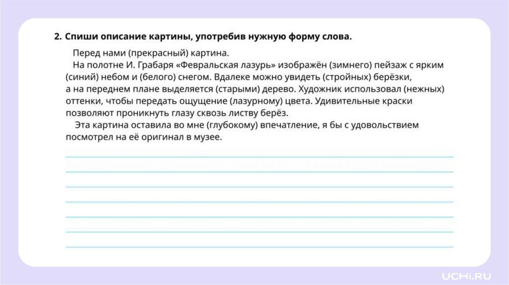 Написание текста по репродукции картиныИ. Грабаря «Февральская лазурь»