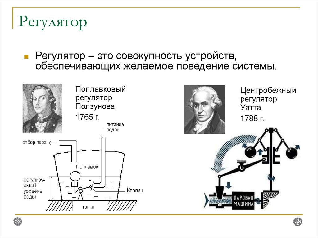 Регулятор – это совокупность устройств,обеспечивающих желаемое поведение системы.