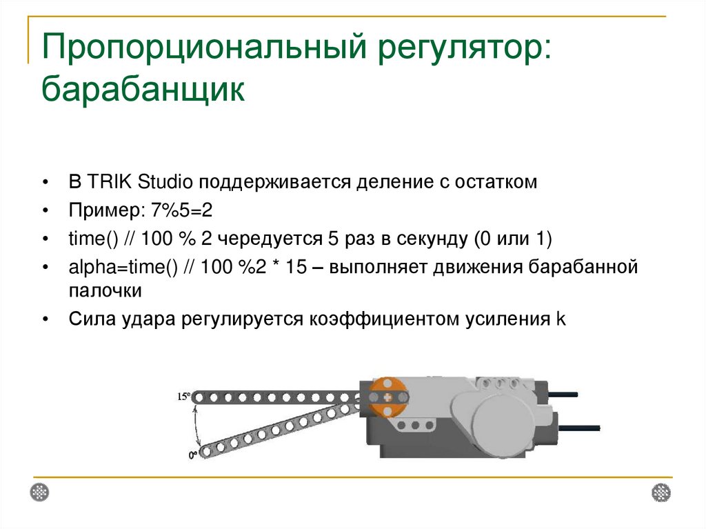 В TRIK Studio поддерживается деление с остаткомПример: 7%5=2