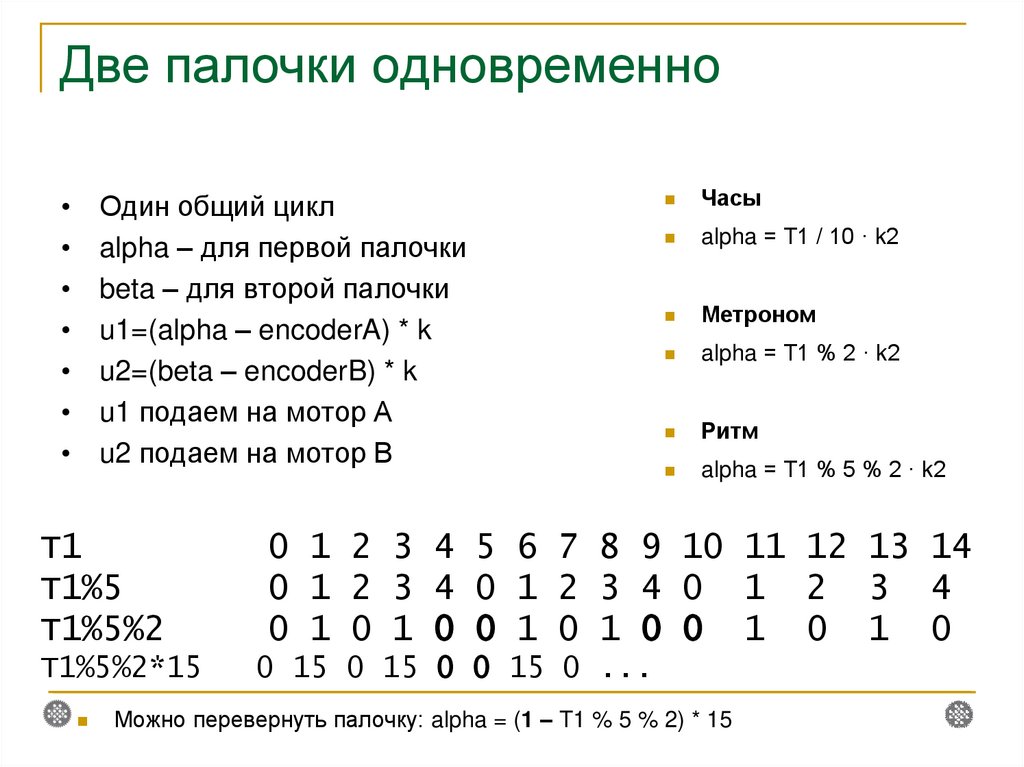 • Пусть encoderA – показания датчика оборотов намоторе A. Тогда управление мощностью мотора