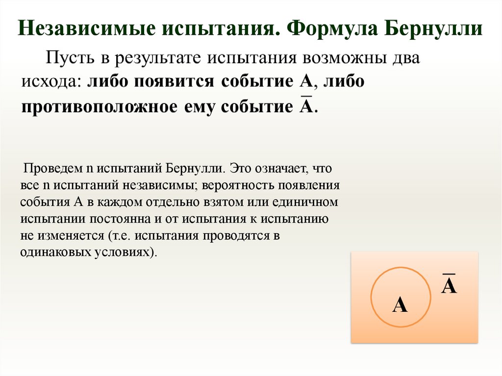 Независимые испытания. Формула БернуллиПроведем n испытаний Бернулли. Это означает, что