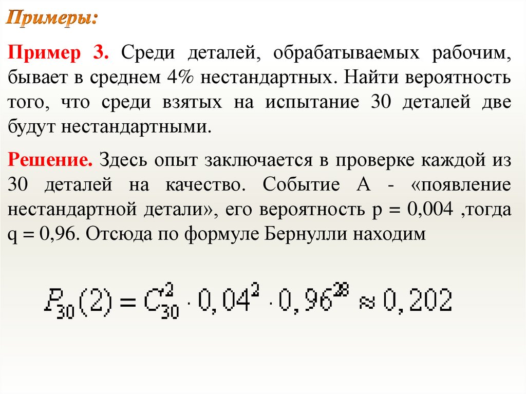 нестандартной детали», его вероятность p = 0,004 ,тогда