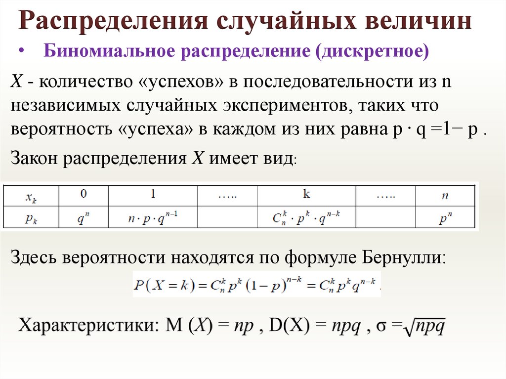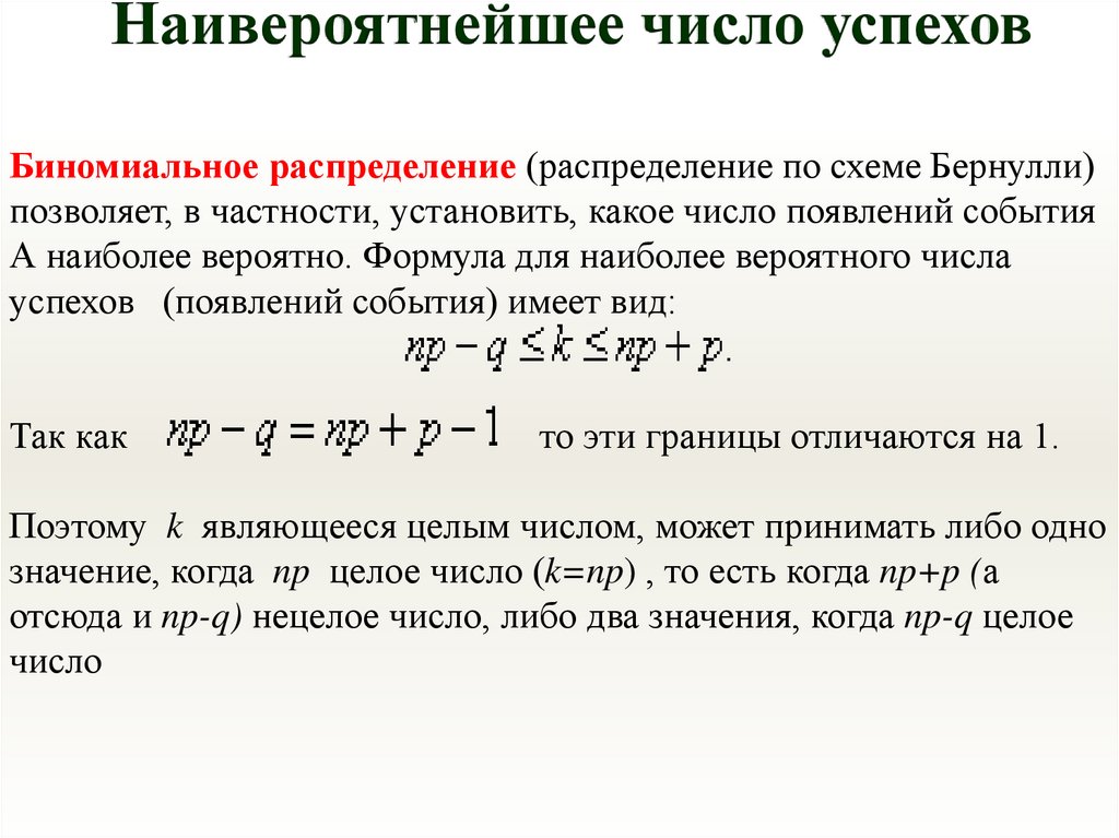 Наивероятнейшее число успеховБиномиальное распределение (распределение по схеме Бернулли)