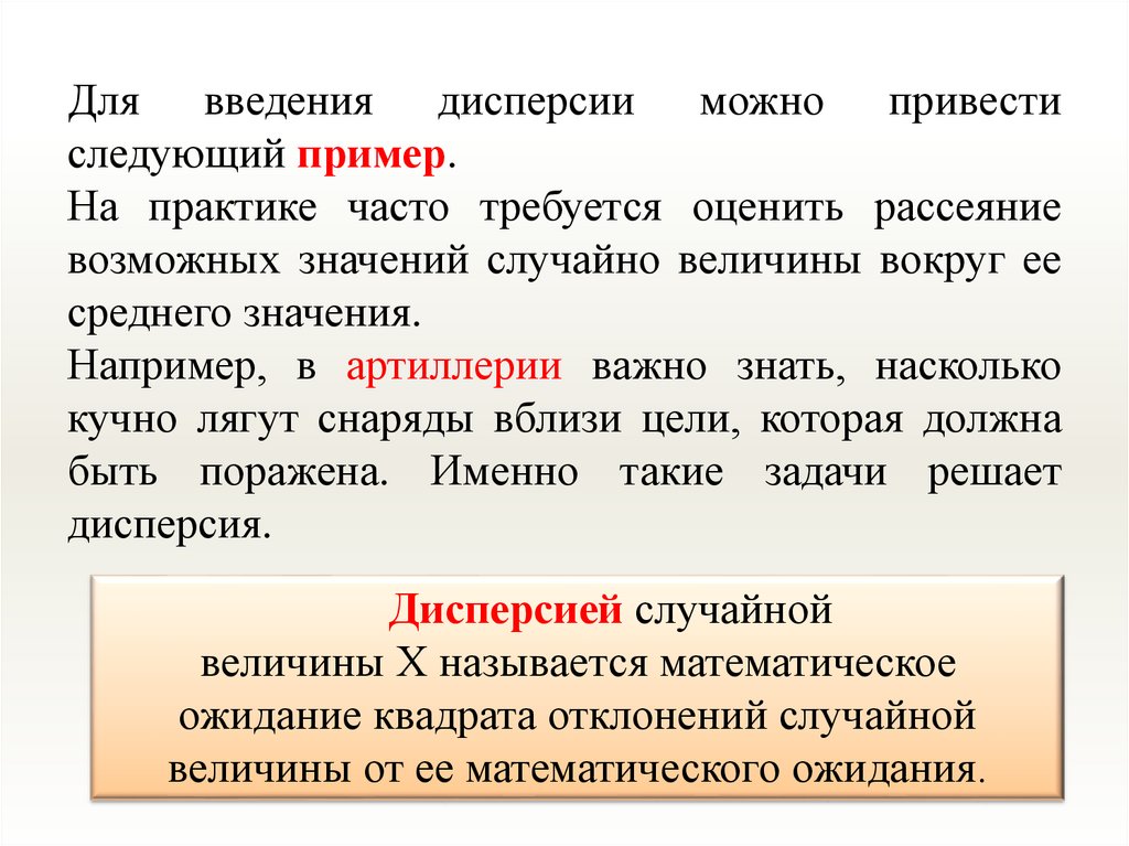Дисперсия случайной величиныДля дискретной случайной величины X , заданной