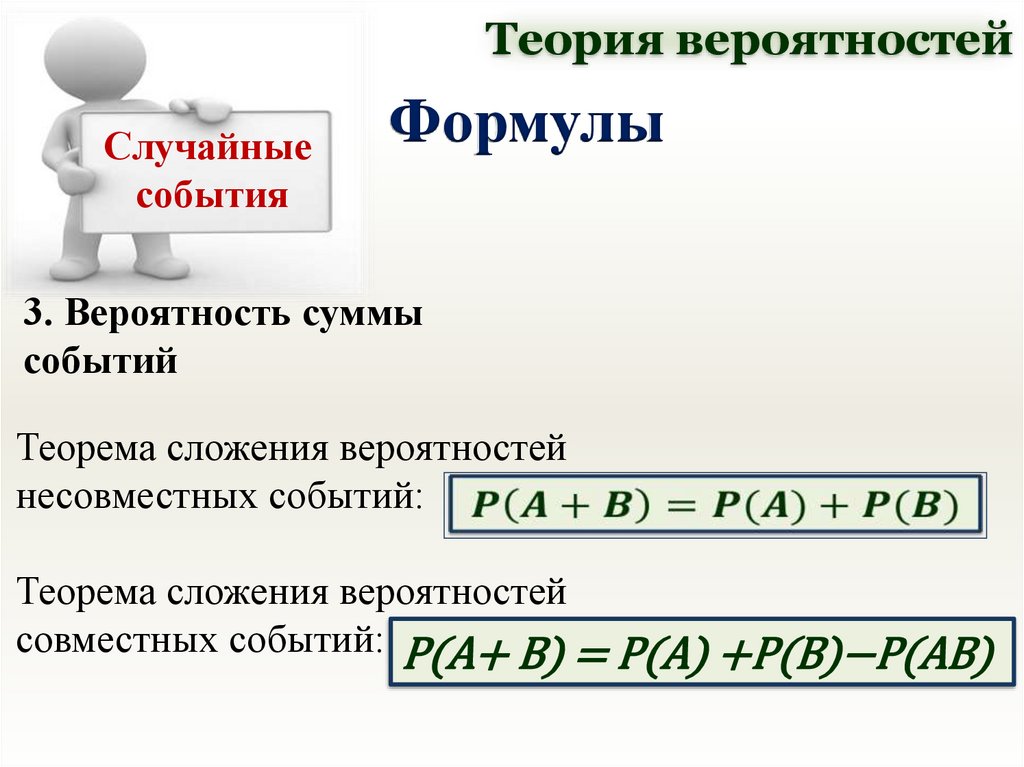 совместных событий: P(A+ B) = P(A) +P(B)−P(AB)