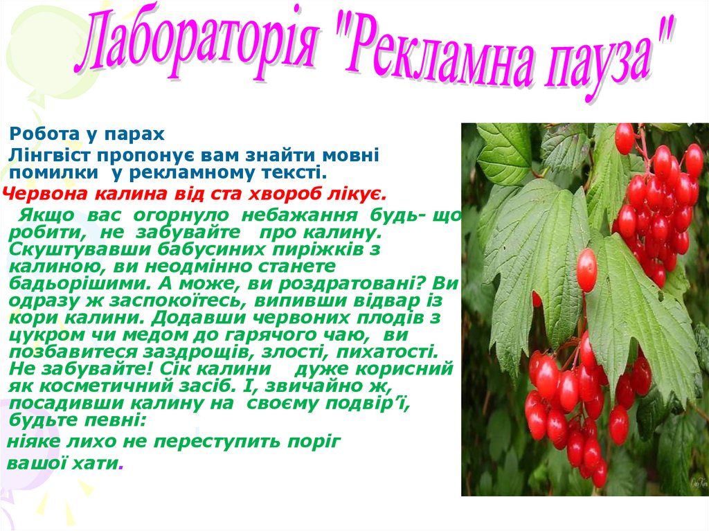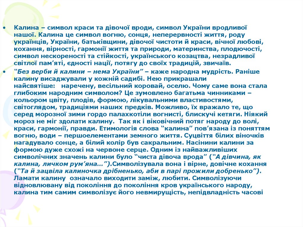 нашої. Калина це символ вогню, сонця, неперервності життя, роду