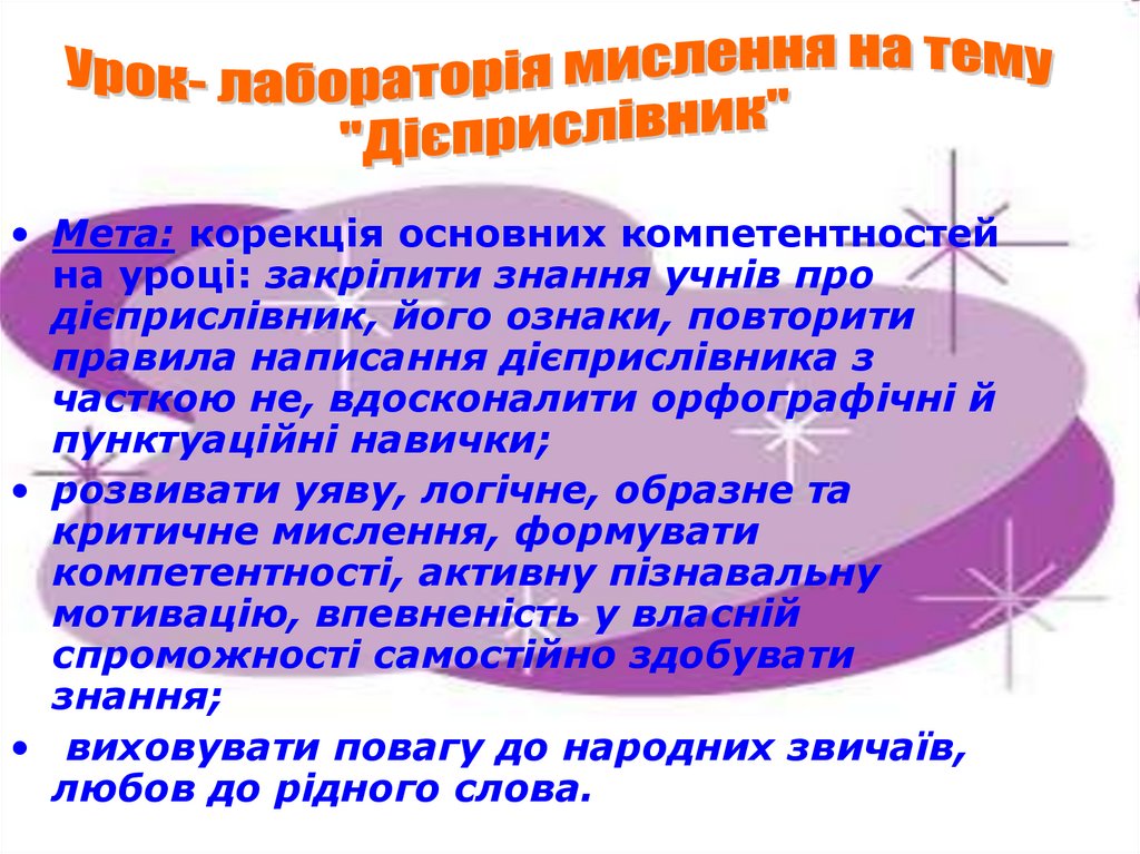 • Мета: корекція основних компетентностейна уроці: закріпити знання учнів про