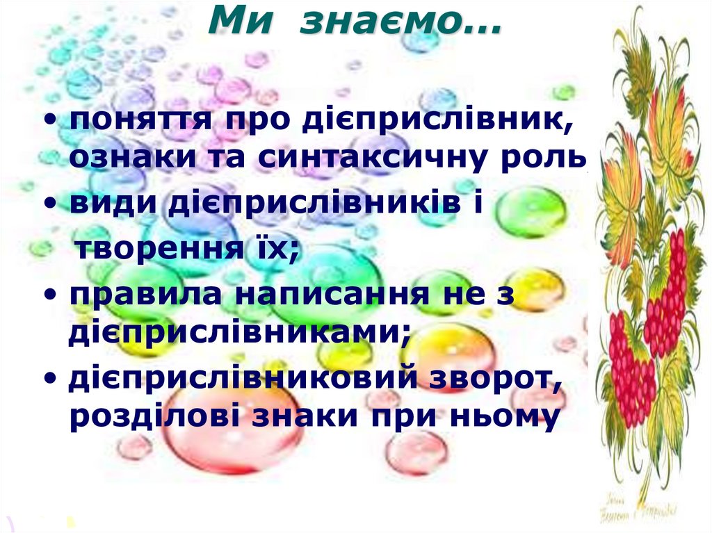 • поняття про дієприслівник,ознаки та синтаксичну роль;