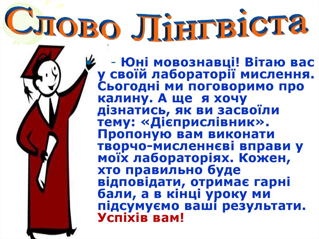 - Юні мовознавці! Вітаю вас