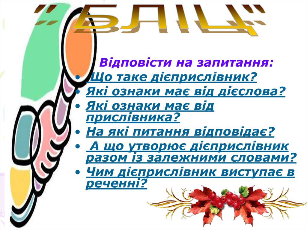 Відповісти на запитання:• Що таке дієприслівник?