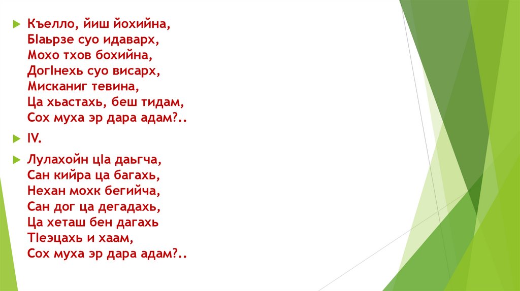 йешалуш, хезаш йу г1айг1а, сатийсар, сатийсам, шен дайн кхерче,