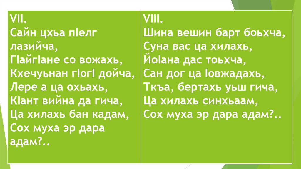 8. Х1етахьлера кегийрхой таханлерачарах къаьсташ