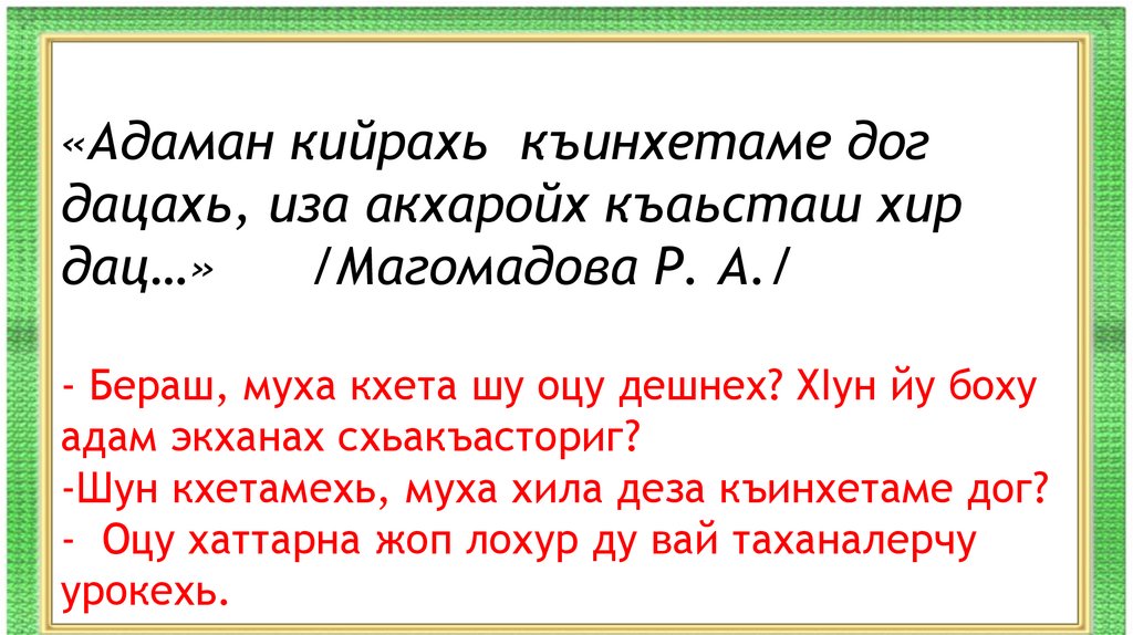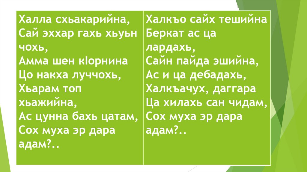 «Адаман кийрахь къинхетаме догдацахь, иза акхаройх къаьсташ хир