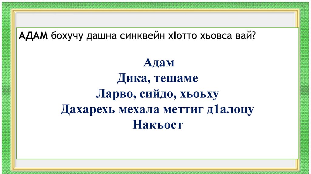 АДАМ бохучу дашна синквейн хIотто хьовса вай?Адам