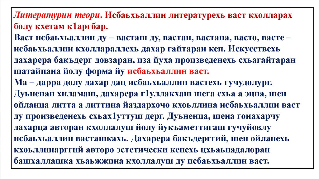 Литературин теори. Исбаьхьаллин литературехь васт кхолларахболу кхетам к1аргбар.