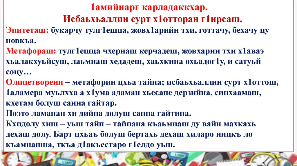 Метафораш: тулг1ешца чхернаш керчадеш, жовхарин тхи х1аваэ