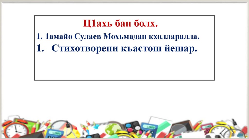 Ц1ахь бан болх.1. 1амайо Сулаев Мохьмадан кхолларалла.