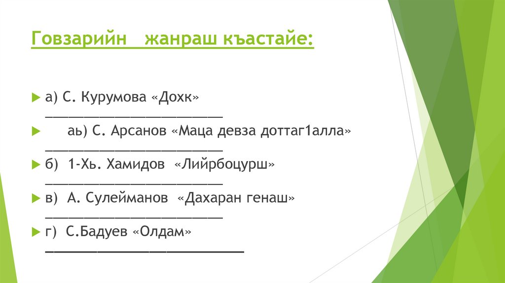 Говзарийн жанраш къастайе:а) С. Курумова «Дохк»