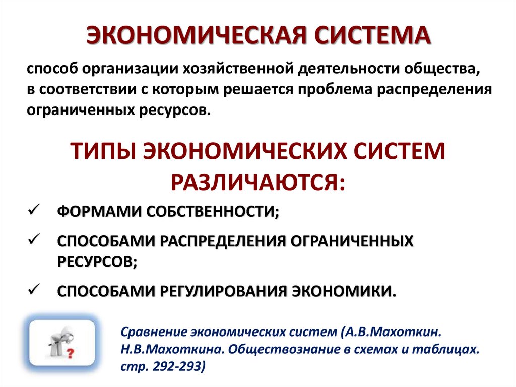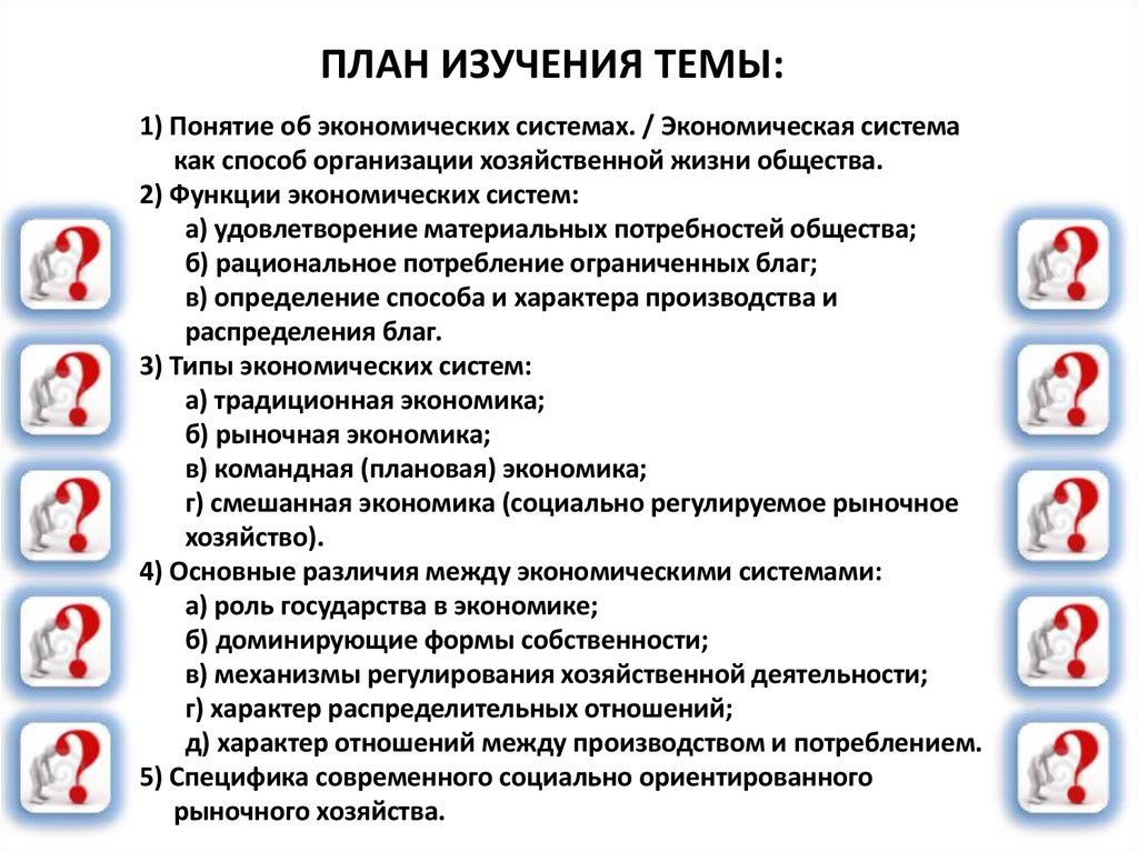 ПЛАН ИЗУЧЕНИЯ ТЕМЫ:1) Понятие об экономических системах. / Экономическая система