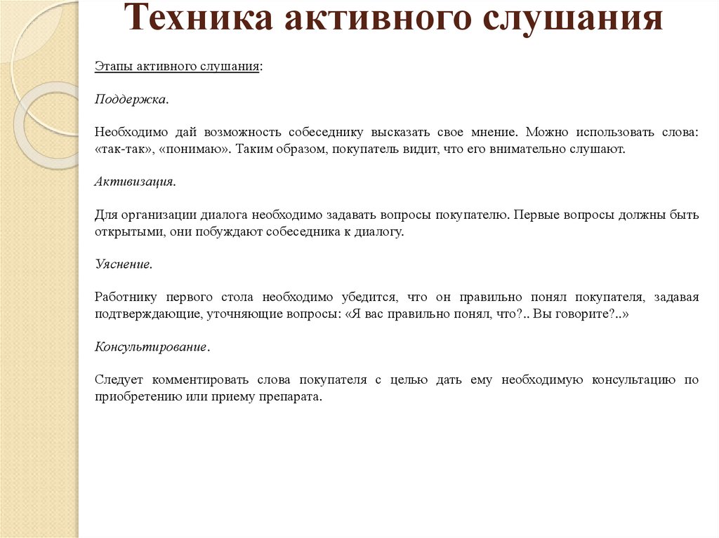 - Внимательно выслушайте и поймите ситуацию. Не стремитесь к тому, чтобы