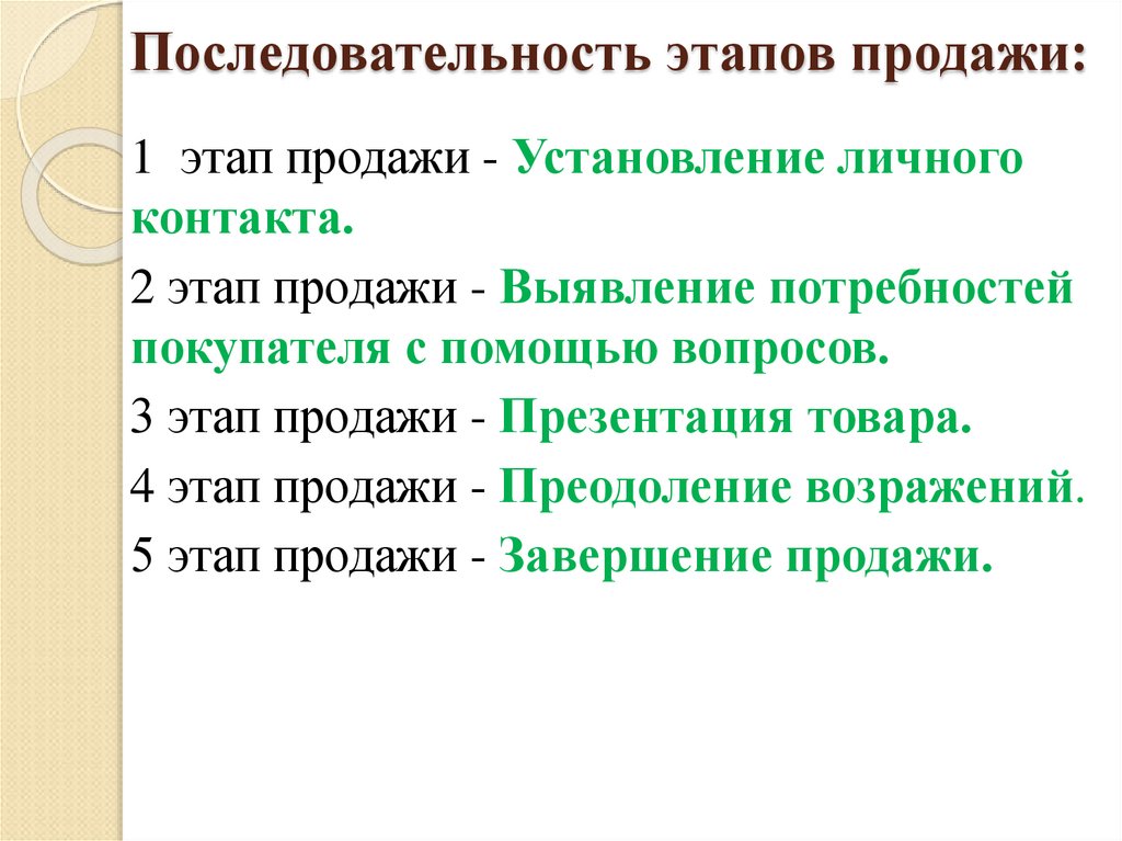 1 этап продажи - Установление личногоконтакта.