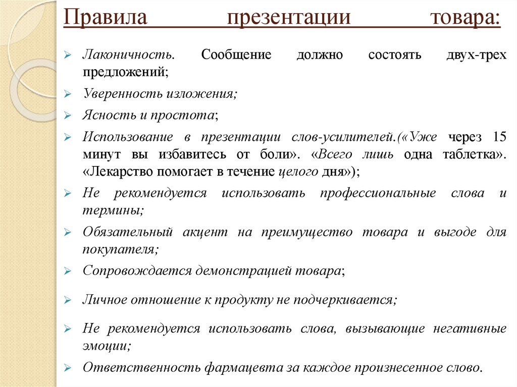 3 этап продажи - Презентация товара.