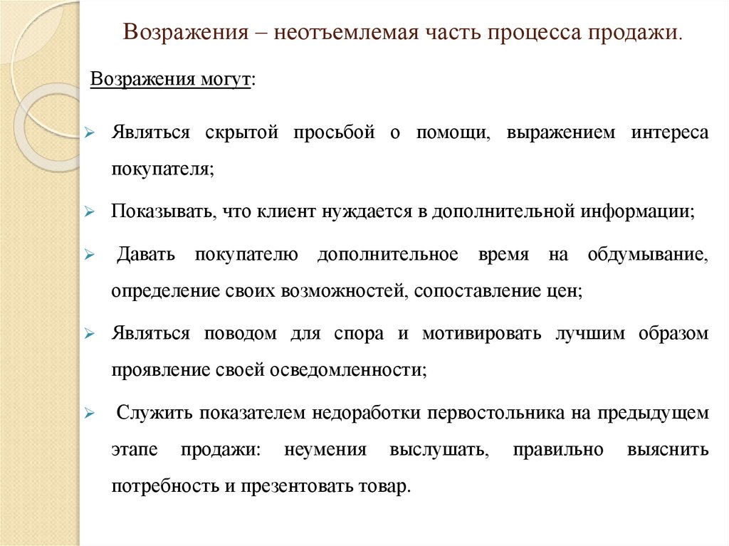 4 этап продажи - Преодоление возражений.