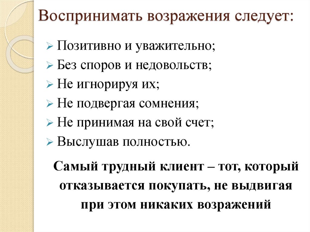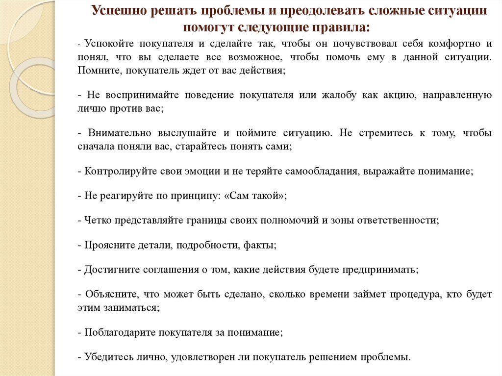 - Не воспринимайте поведение покупателя или жалобу как акцию, направленную