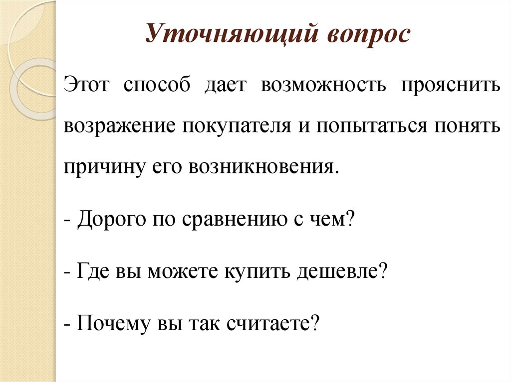 задают для уточнения слов покупателя и