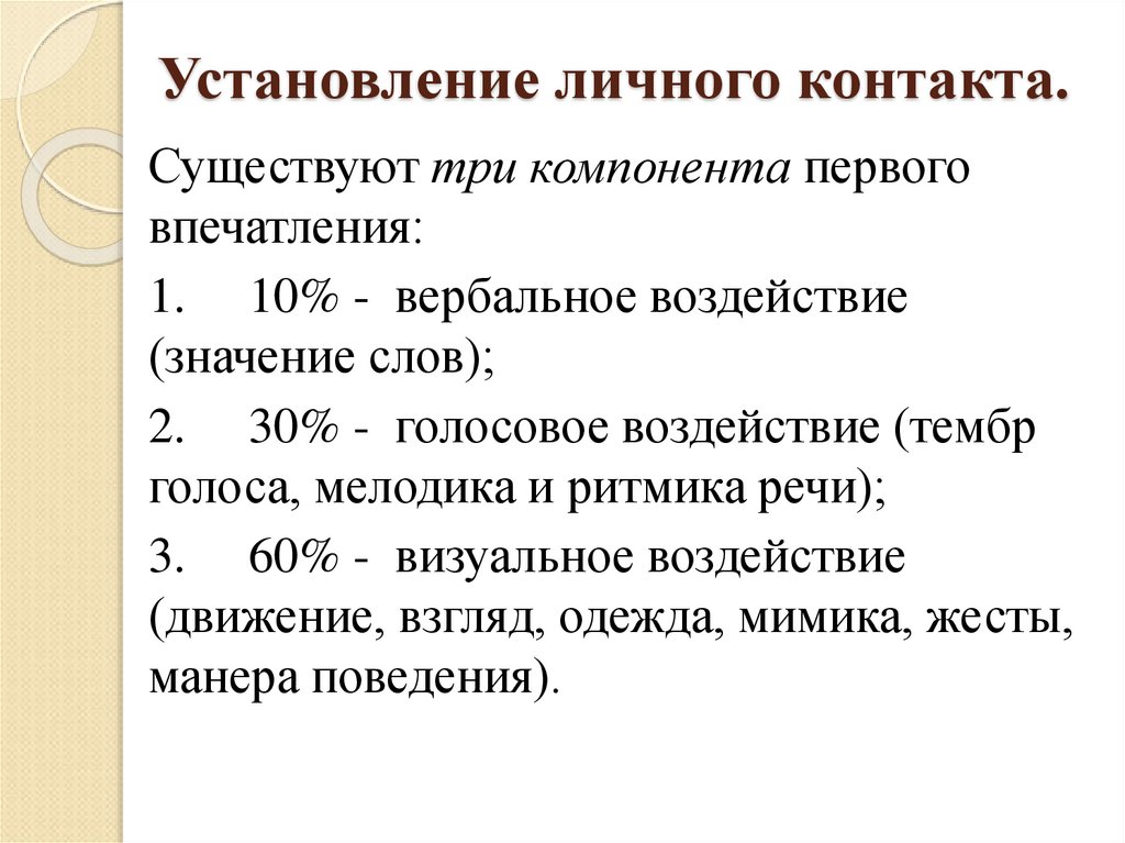 6. Способы установления личного контакта: