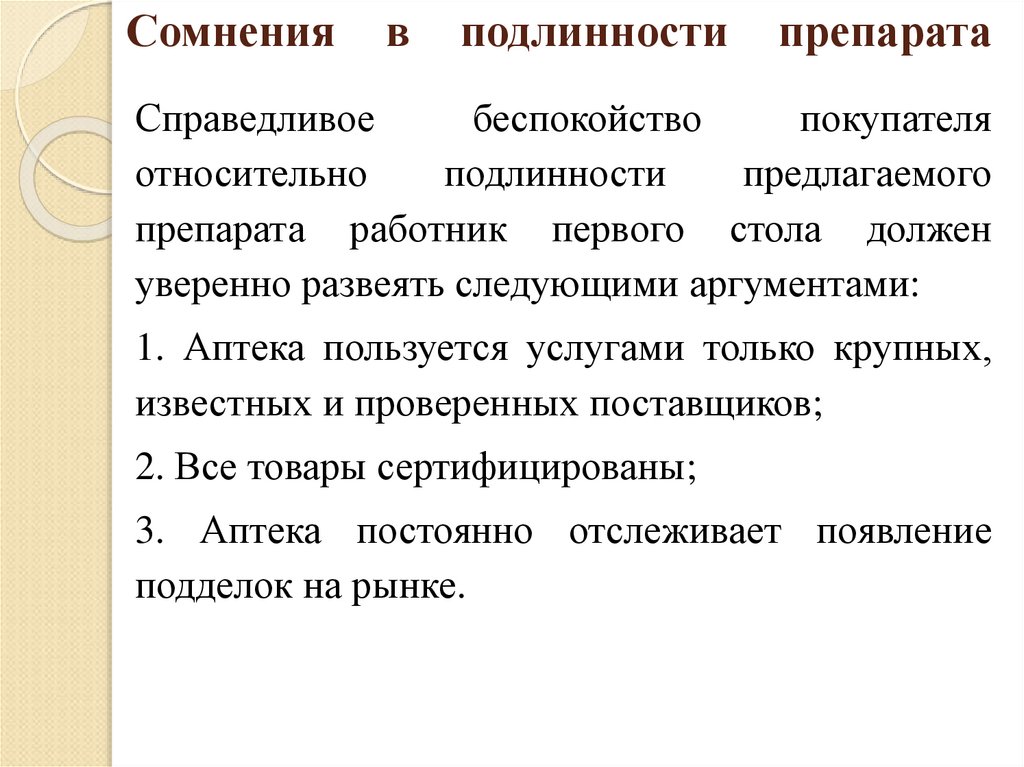 37. Сомнения в подлинности препарата