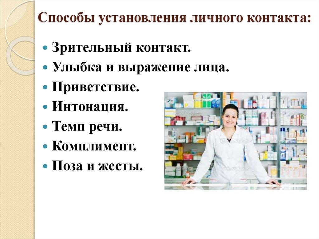 1. Методы работы с клиентами в аптеке