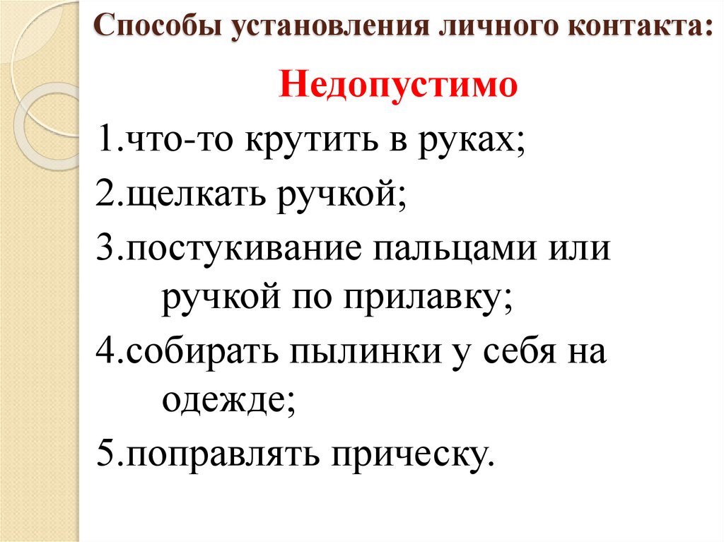 5. Способы установления личного контакта: