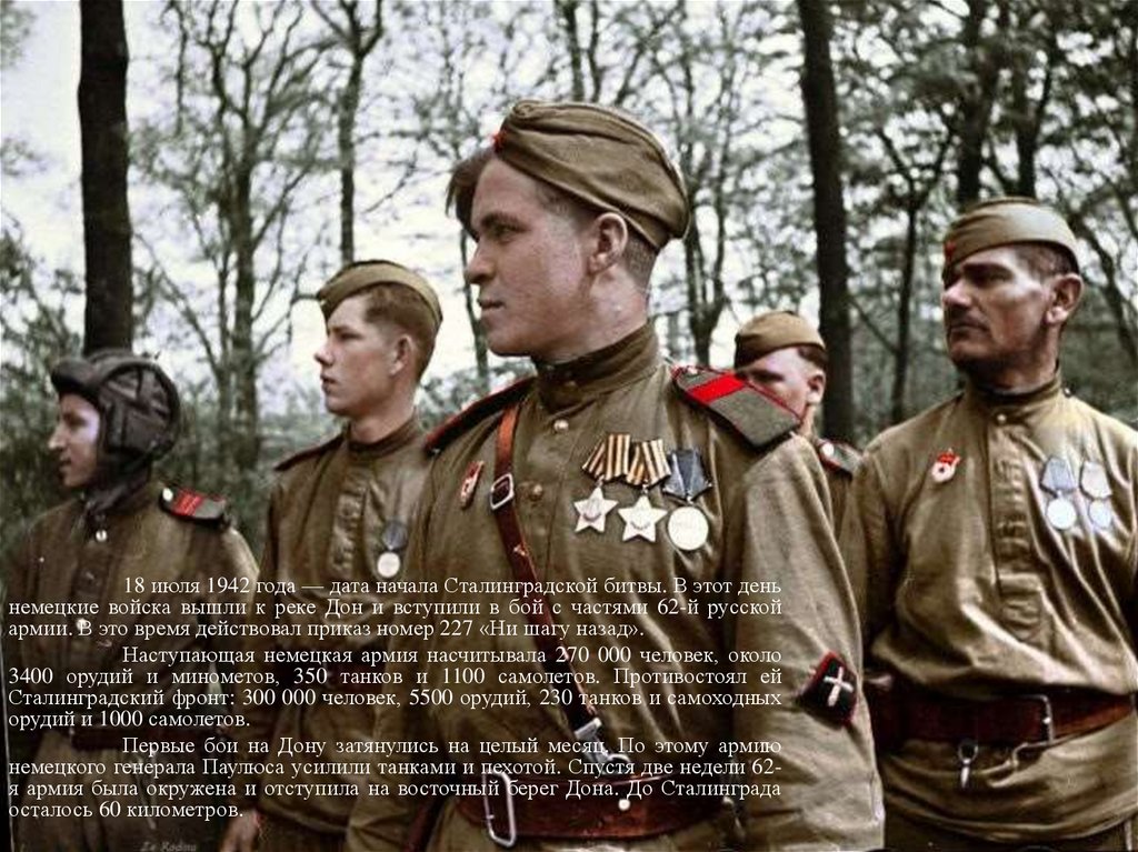 18 июля 1942 года — дата начала Сталинградской битвы. В этот деньнемецкие войска вышли к реке Дон и вступили в бой с частями 62-й русской