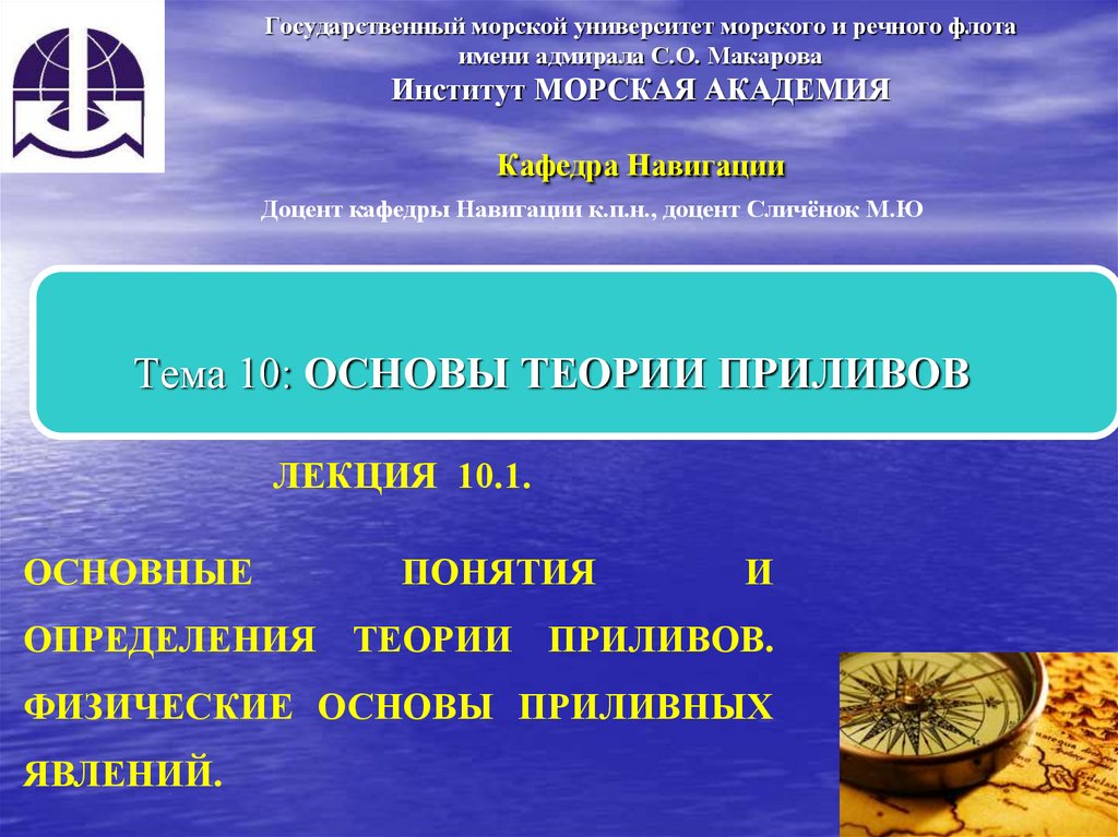 Тема 10: ОСНОВЫ ТЕОРИИ ПРИЛИВОВ
