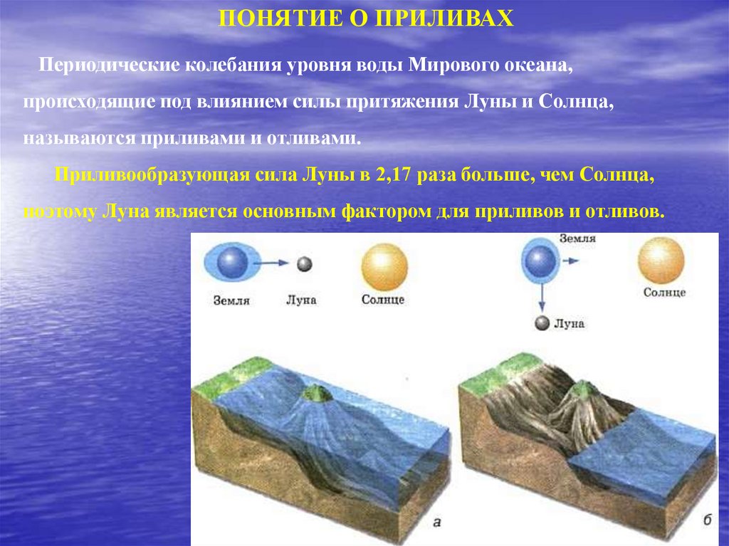 ПОНЯТИЕ О ПРИЛИВАХПериодические колебания уровня воды Мирового океана,