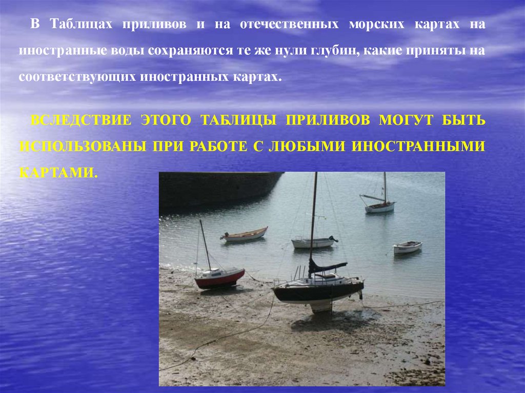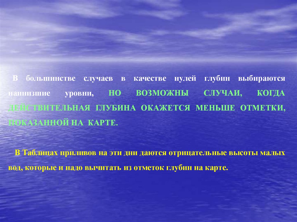 ВЫСОТЫ ПРИЛИВНЫХ УРОВНЕЙ И НУЛЬ ГЛУБИНВысоты полных и малых вод в Таблицах приливов даны в метрах